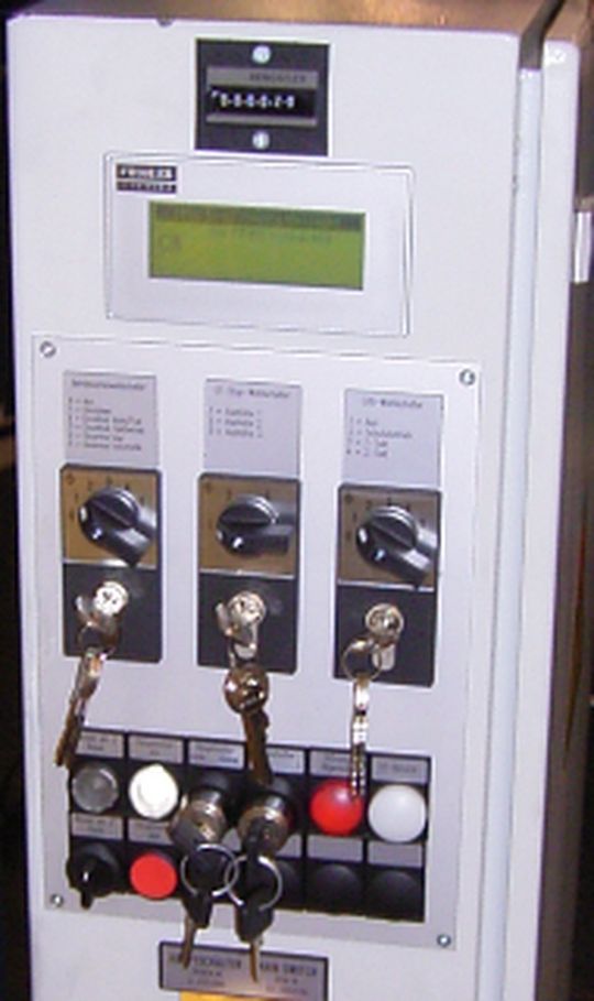 Die Visualisierung der verschiedenen Betriebsprogramme erfolgt durch das Human-Machine-Interface FHMI. Dies wird einfach an die vorhandene RS232-Schnittstelle angeschlossen. Damit hat der Pressenbetreiber die Möglichkeit, Informationen, wie das angewählte Programm oder Statusmeldungen am Display, abzulesen.