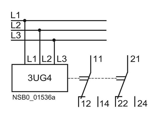 Das Netzüberwachungsrelais wird hier im Ruhestromprinzip eingesetzt (wahlweise auch im Arbeitsstromprinzip). Ist die Netzspannung vom Landanschluss im zulässigen Bereich von bis zu 440 V +5 Prozent (462 V) sind die Kontakte 21/24 geschlossen und geben die Steuerspannung für die Leistungsschütze frei. Bei einer erkannten Überspannung >462 V öffnen die Kontakte, beide Schütze fallen ab und trennen somit das Bordnetz von der Landanschlussversorgung.
