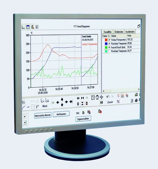 Mit Profisignal Go werden Messwerte gespeichert, in Trends angezeigt, analysiert und exportiert. Trends lassen sich online beobachten. Gleichzeitig können historische Daten ausgewertet werden. Die Inbetriebnahme ist sehr einfach. Vom Sensoranschluss zum Trend sind es nur wenige Mausklicks. On- und Offline-Werte können praktisch grenzenlos dargestellt werden. Ohne einen laufenden Versuch zu unterbrechen, ist es möglich, in historische Werte zu zoomen. Neben y(t)-Diagrammen stehen y(x)- und Logikanalysediagramme zur Verfügung.