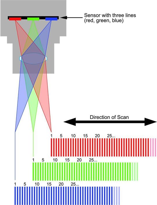 Es haben sich mittlerweile drei technische Verfahren bzw. Typen von Zeilenkameras für industrielle Anwendungen durchgesetzt: 3CCD Prismenkameras, trilineare Kameras und Dualzeilen-Kameras mit Bayer Pattern: