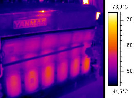 Handelsschiffe bieten Objekte für thermografische Inspektionen in großer Zahl: Sie haben riesige Maschinen, große elektrische Installationen, ausgedehnte Elektroniksysteme, die sich nur schwer mit visuellen Inspektionen überwachen lassen. Darüber hinaus ist Brandvermeidung ein wichtiges Thema, und die einschlägigen Vorschriften sind klar: Gemäß der SOLAS-Vorschriften (Safety of Life at Sea) für die Klassifizierung von Schiffen darf die maximale Oberflächentemperatur von Maschinen, Teilen und Komponenten im Maschinenraum eines Schiffes nicht über 220°C ansteigen. Um eine Entzündung und die Entstehung eines Brandes zu vermeiden, müssen alle Oberflächen mit einer Temperatur über 220°C isoliert oder auf andere Weise geschützt werden.