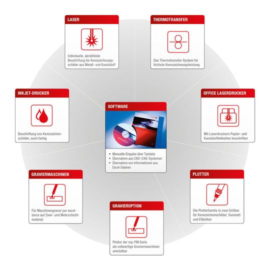 Bei industriellen Anwendungen in der Elektrotechnik ist die Beschriftung von Betriebsmitteln wichtig. Während bisher beispielsweise Schilder mittels Tusche beschriftet wurden, haben Kennzeichnungsverfahren wie Thermotransfer, Tintenstrahldruck und Laserbeschriftung immer mehr an Bedeutung gewonnen.