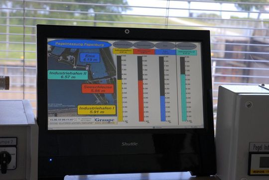 Die analogen Funksignale der Sensoren werden am zentralen Steuerstand von vier DX70-Empfängern aufgenommen und an die Anzeige-Instrumente sowie die Visualisierungssoftware weitergegeben. Die Software zur Visualisierung stammt ebenfalls aus dem Hause Graupe Elektro. Die webbasierte Anzeige kann auch im Internet abgerufen werden. In Kürze soll noch eine Variante für Smartphones folgen. Damit haben Schiffsführer und andere Interessierte die Möglichkeit, die aktuellen Pegelstände im Papenburger Hafen direkt mit ihrem Handy abzurufen.