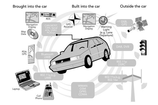 Verkehrstelematik-Systeme sind vielerorts in der Erprobungsphase. Das Vehicle Infrastructure Integration Consortium (VIIC) in den USA beschäftigt sich mit Car-to-Car- und Car-to-Infrastructure-Kommunikation, um durch eine schnelle Kommunikation zwischen Fahrzeugen einerseits und der Infrastruktur andererseits künftig Unfälle zu vermeiden. Auch in Japan laufen ähnliche Projekte. So werden auch sicherheitsrelevante Funktionen von Navigations- und Entertainment-Systemen rapide wachsen.