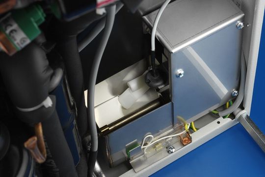 Automatische Kondensatverdampfer ermöglichen die Entsorgung von mehreren Litern Wasser am Tag, was bei einem korrekt abgedichteten Schrank und unter normalen Betriebsbedingungen vollständig ausreicht. Zur Sicherstellung einer Kondensatabführung im Störungsfall oder bei erhöhtem Wasseranfall ist ein Sicherheitsüberlauf vorhanden.