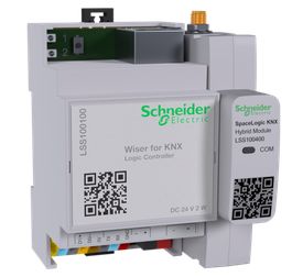 Das neue SpaceLogic KNX Hybrid Modul schafft nun eine Verbindung zwischen diesen bisher inkompatiblen Welten. Angeschlossen an Wiser for KNX oder einen spaceLYnk Controller ermöglicht das Hybrid Modul eine drahtlose Verbindung der Wiser Geräte von Schneider Electric mit installierten KNX-Lösungen. Das Wiser-Sortiment umfasst beispielsweise fernsteuerbare Steckdosen im System M und System Design, Smart Plugs, drahtlose Fenster- und Türsensoren, Bewegungs- und Wassersensoren oder Temperatur- und Luftfeuchtigkeitssensoren, die sich mithilfe des Moduls einfach in eine bestehende KNX-Installation integrieren lassen.