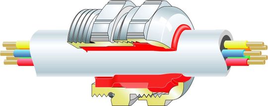 Pflitsch hat hier einen Schwerpunkt gesetzt: Entgegen der ringförmigen Quetschung - wie bei Standard-Verschraubungen üblich – arbeiten diese Typen mit einer großflächigen, balligen Abdichtung, weil sich der Dichteinsatz bim Anziehen der Druckschraube axial und radial sanft ans Kabel anschmiegt. Das schont das Kabel und verhindert irreparable Schäden an dessen Isolationsmantel. Gleichzeitig ergeben sich eine sichere Zugentlastung, die Vollisolation des Kabels gegen den metallischen Verschraubungskörper und größere Spannbereiche. In vielen Fällen kann der Anwender sogar zu einer kleineren Verschraubung greifen. UNI Dicht erfüllt serienmäßig die hohe Schutzart IP68 (bis 15 bar Druckdichtigkeit), was weit über der Norm liegt. Diese Kabelverschraubung ist damit staub- und druckwasserdicht.