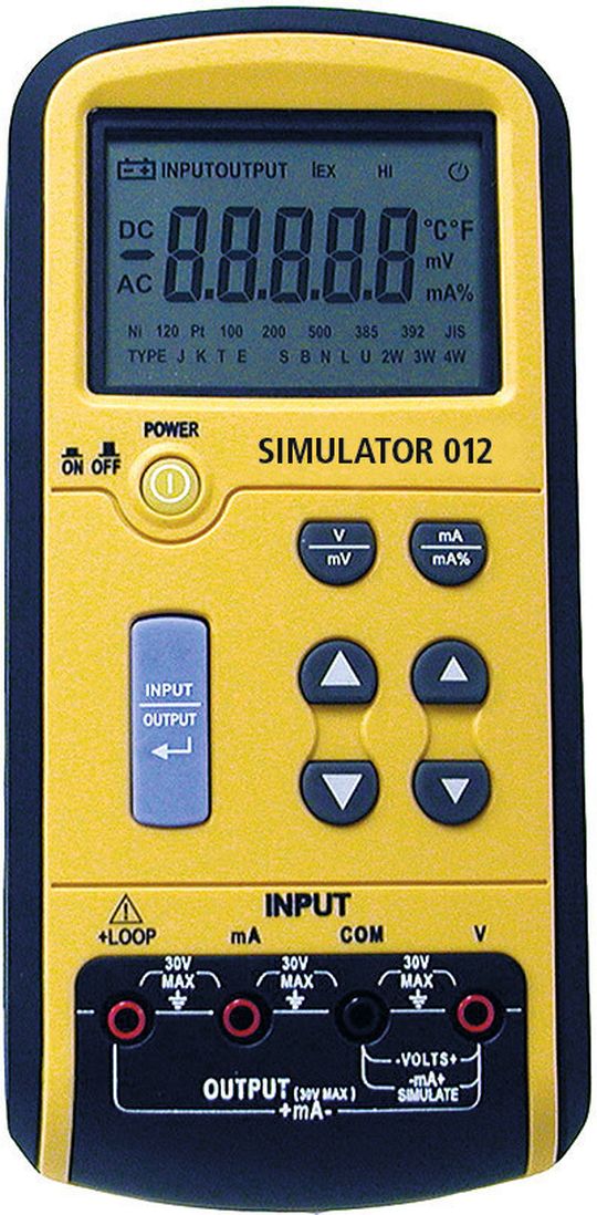 - Zweidrahtsimulator (Live-zero-Geber) 4....20 mA: Der Simulator 012 kann anstelle eines Live-zero-Gebers eingesetzt werden, um den Messkreis oder den vorhandenen Speisetrennverstärker zu prüfen oder einzustellen.