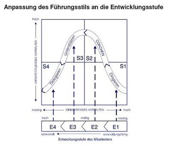 Wenn Führungskräfte die vier Führungsstile und die Entwicklungsstufen ihrer Mitarbeiter kennen, können sie entscheiden, welches Führungsverhalten bei einer Aufgabe angemessen ist. Ist die Aufgabe für dien Mitarbeiter neu, also sein Engagement hoch, aber seine Kompetenz noch niedrig, dann ist eine Anleiten angesagt. Bei einem Mitarbeiter hingegen, der bereits erste Erfahrungen gesammelt hat, dass Engagement aber aufgrund von Rückschlägen erlahmt ist, ist ein Coachen angesagt. Hat ein Mitarbeiter schon eine gewisse Kompetenz entwickelt, scheut sich aber, diese anzuwenden, dann ist primär eine mentale Unerstützung nötig. Und hat ein Mitarbeiter bereits eine recht große Routine und stimmt sein Engagement, dann kann die Führungskraft die Aufgabe an den Mitarbeiter delegieren.
