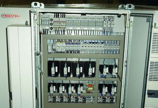 Troester dagegen wählt die andere Variante, bei der die Kühlkörper an die Halbleiterrelais optimal angepasst sind. Die dann als Halbleiterschütze bezeichneten Geräte lassen sich einfach auf die Hutschiene schnappen, beziehungsweise bei den schwereren Ausführungen auf die Montageplatte montieren. Bezüglich der Wärmeentwicklung betont Karsten Kowalski allerdings: „Diese Geräte arbeiten mit deutlich weniger als einem Prozent Verlustleistung, was somit für die Wärmeabfuhr aus dem Schaltschrank kein Problem darstellt.“